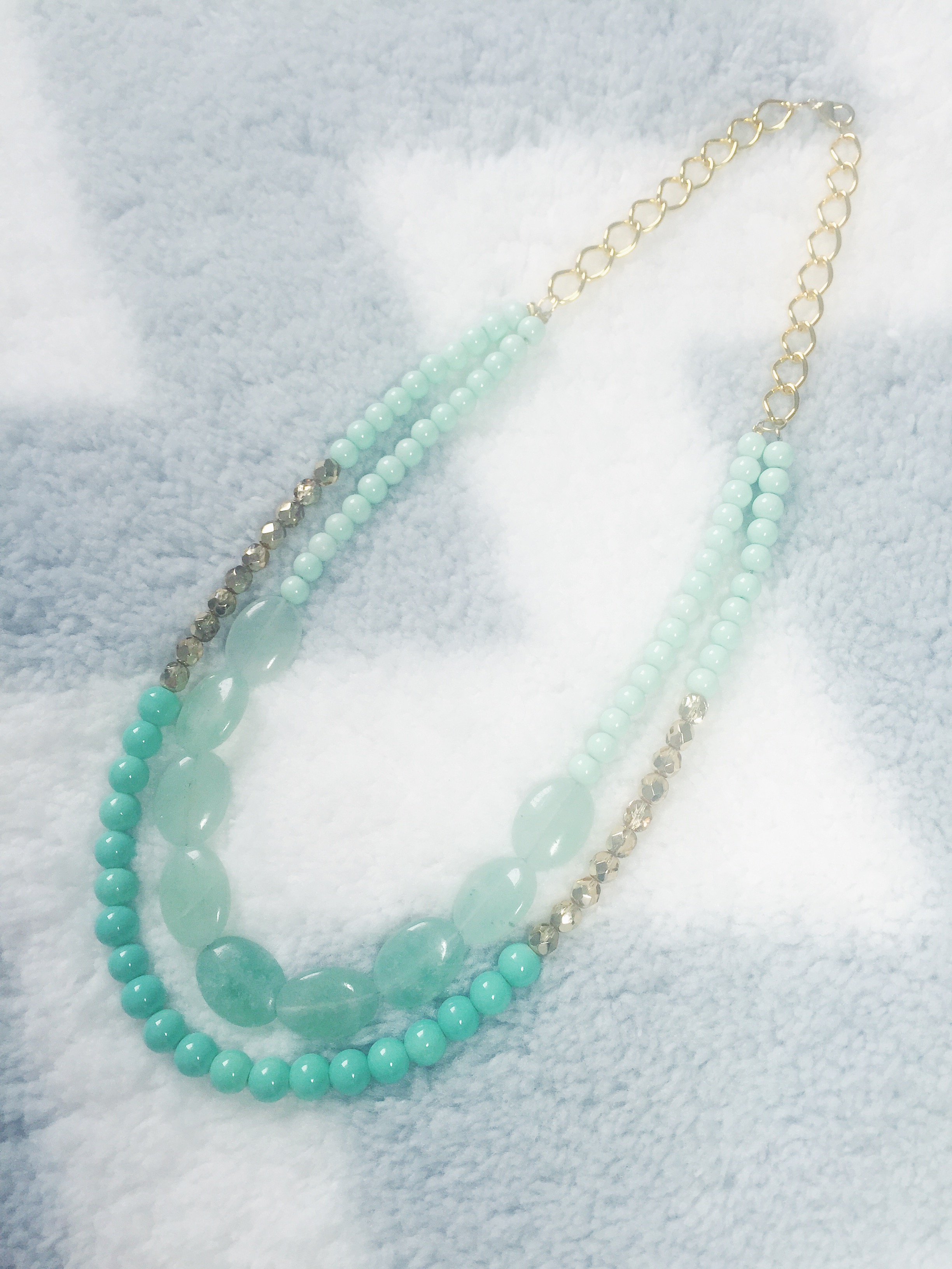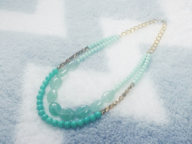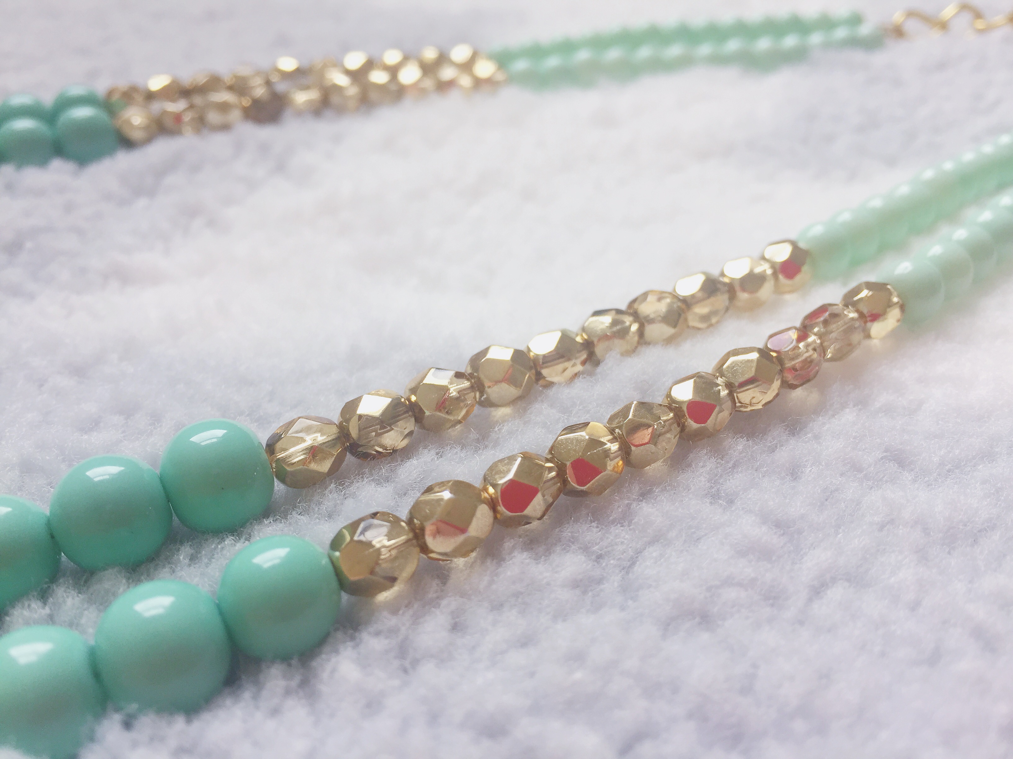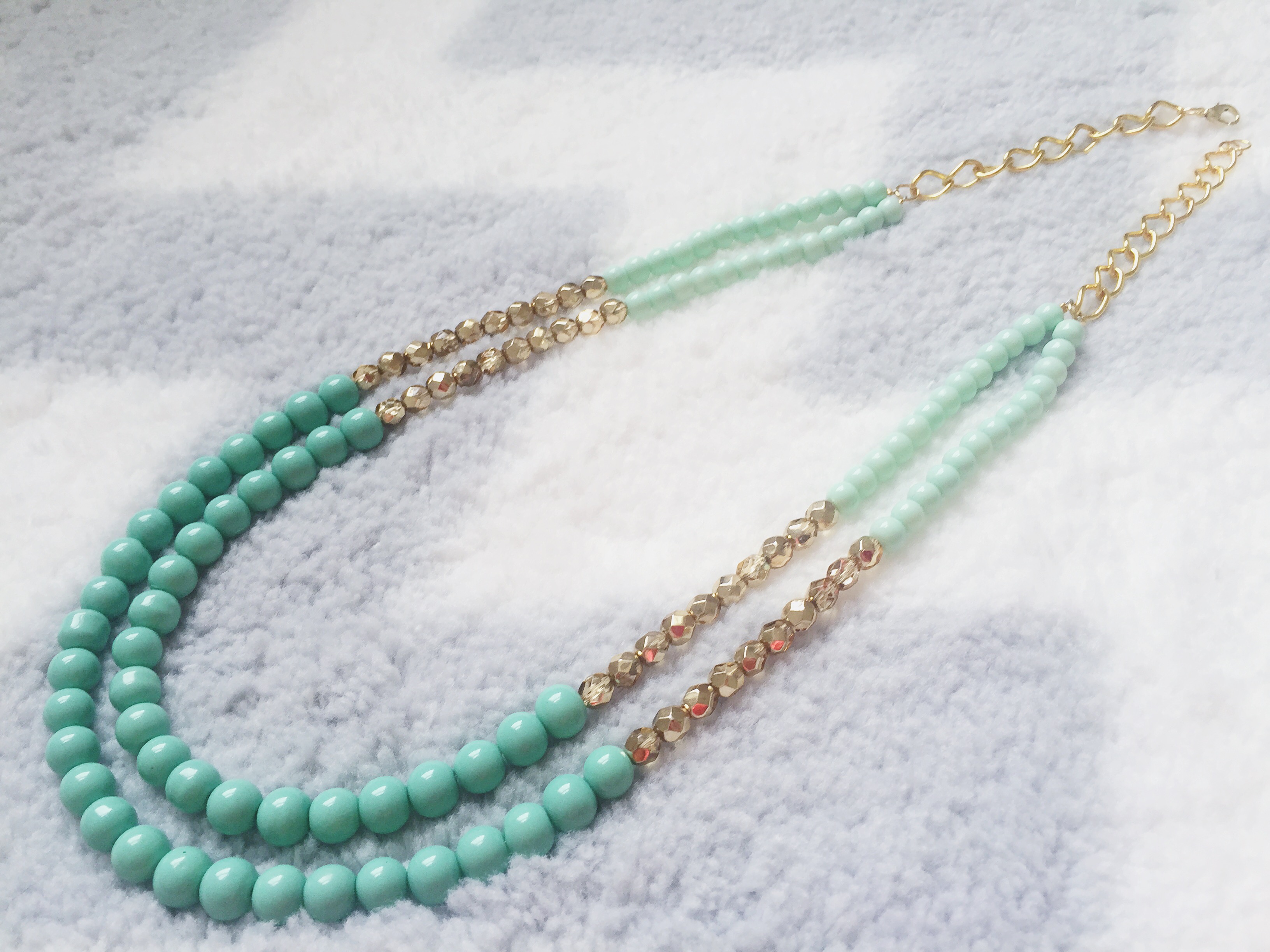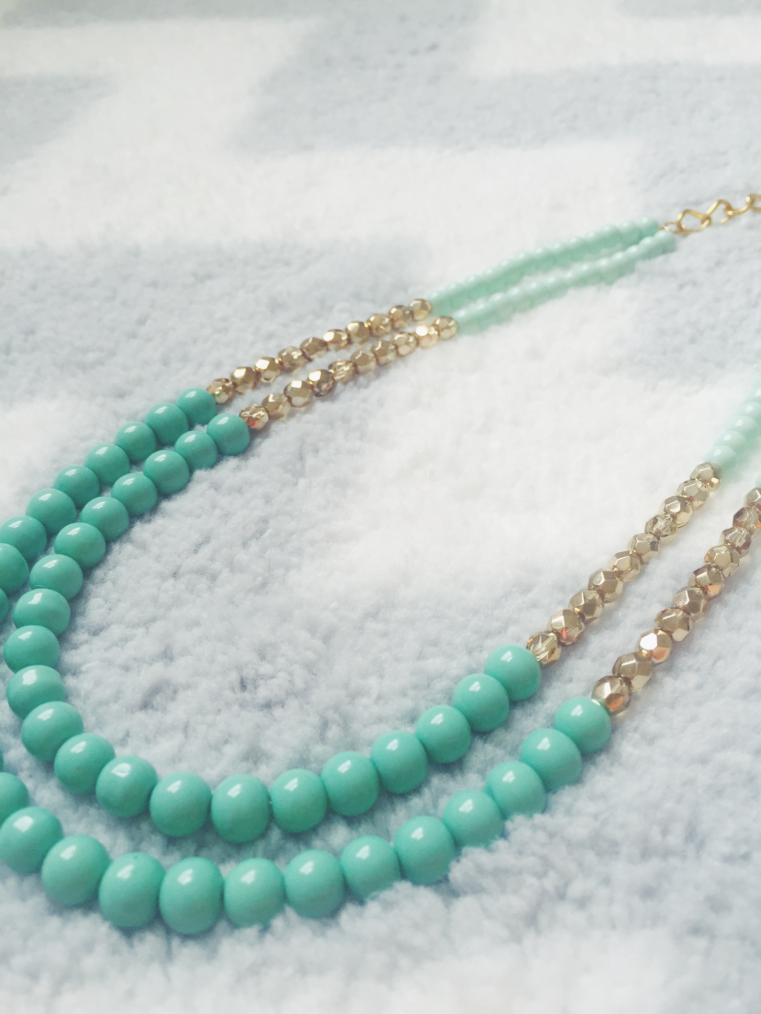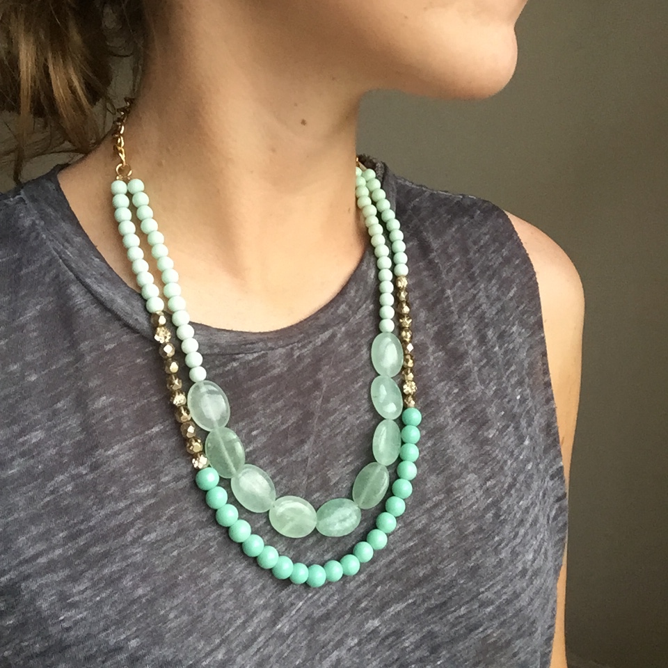 I recently fell in LOVE with this mint green color when shopping for beads to make fresh new summer designs! This color is the epitome of a thirst quenching color on a hot summer day… it will brighten up any summer outfit! I made two variations of this necklace, as seen above. The first with chunky sea-foam green gemstones for my festival-goers, and the second is a classier look with round pearl-shaped beads for my Audrey Hepburn-type girls. I paired these light green colored beads with a gold hue to give a cheerful and fresh summer look. These necklaces will go perfectly with your favorite summer cotton sundress for an easy-breezy, flowey look with a pop of color! The best part is that this Mint Green color will make any outfit fresh and glowing. I made both Double Stranded Statement Necklaces using Mint Green 6mm Glass Beads, Aqua-Colored Opaque 8mm Glass Beads, 6mm Glass Czech Gold Beads with a Fire Polish, and Green Oval Stones in a 15x20mm size (as seen in the 1st design). Shop here to get your fresh new summer look!