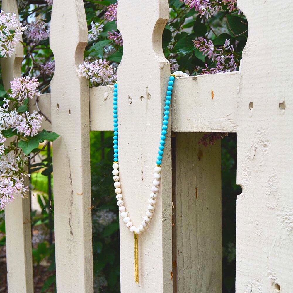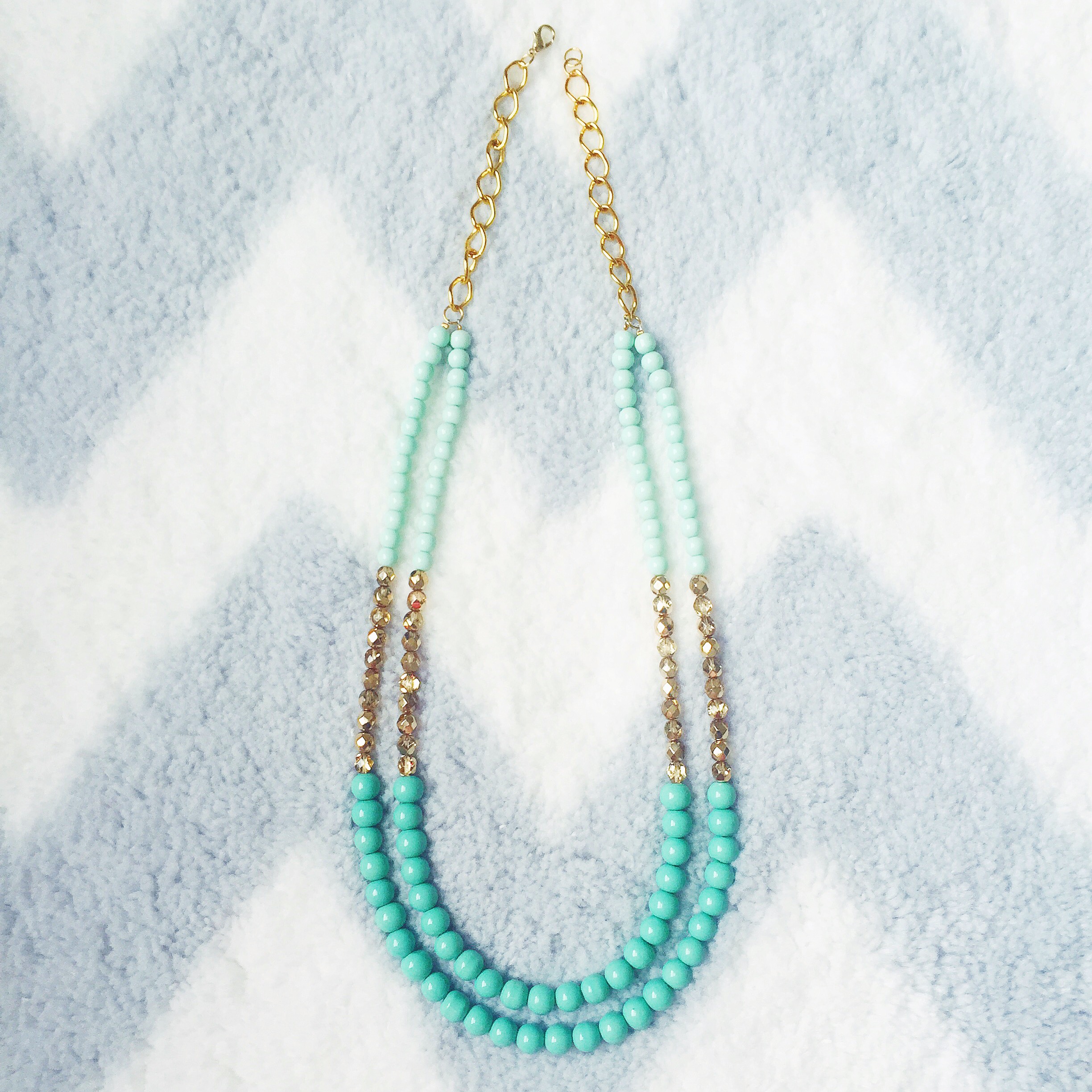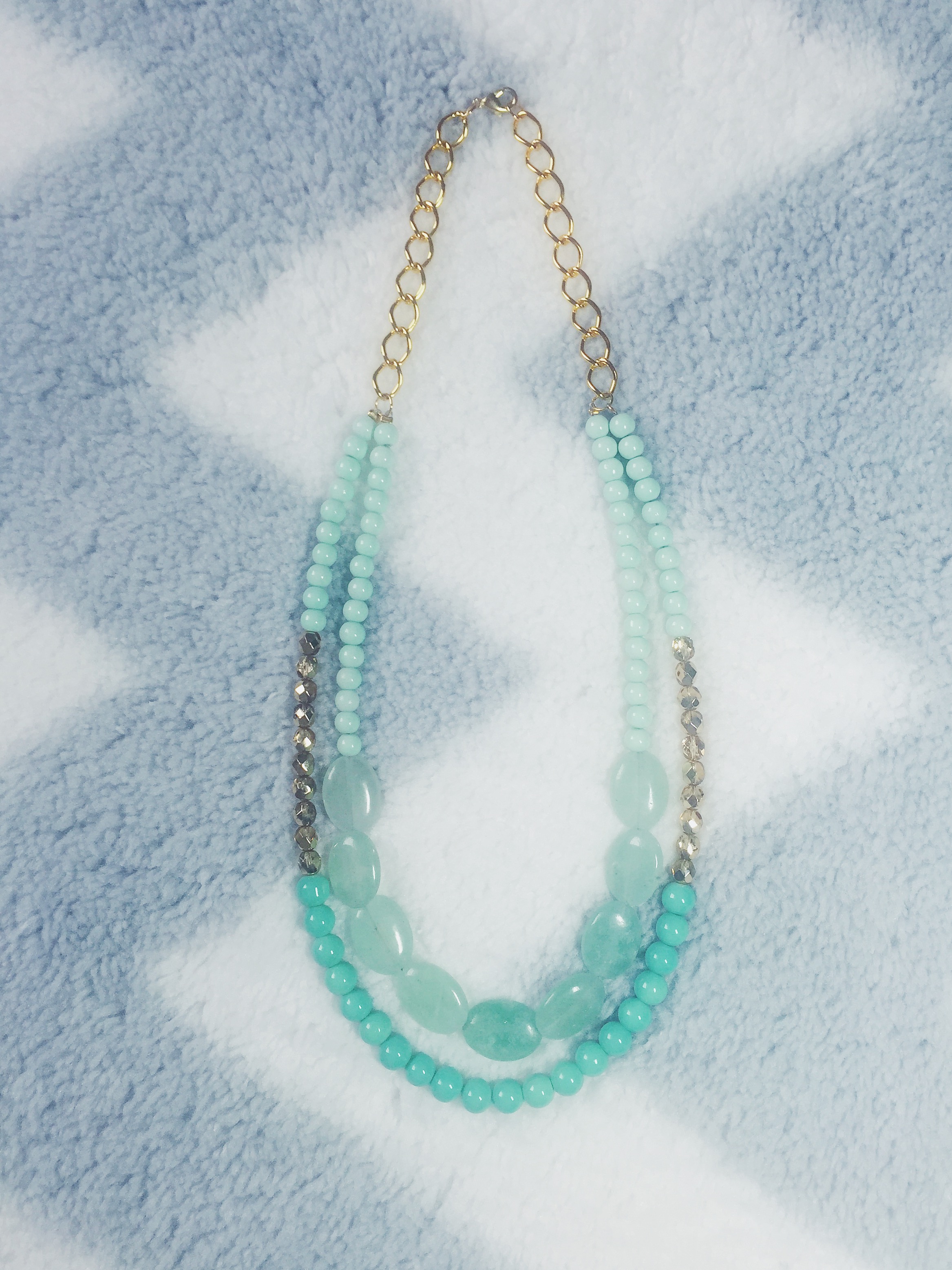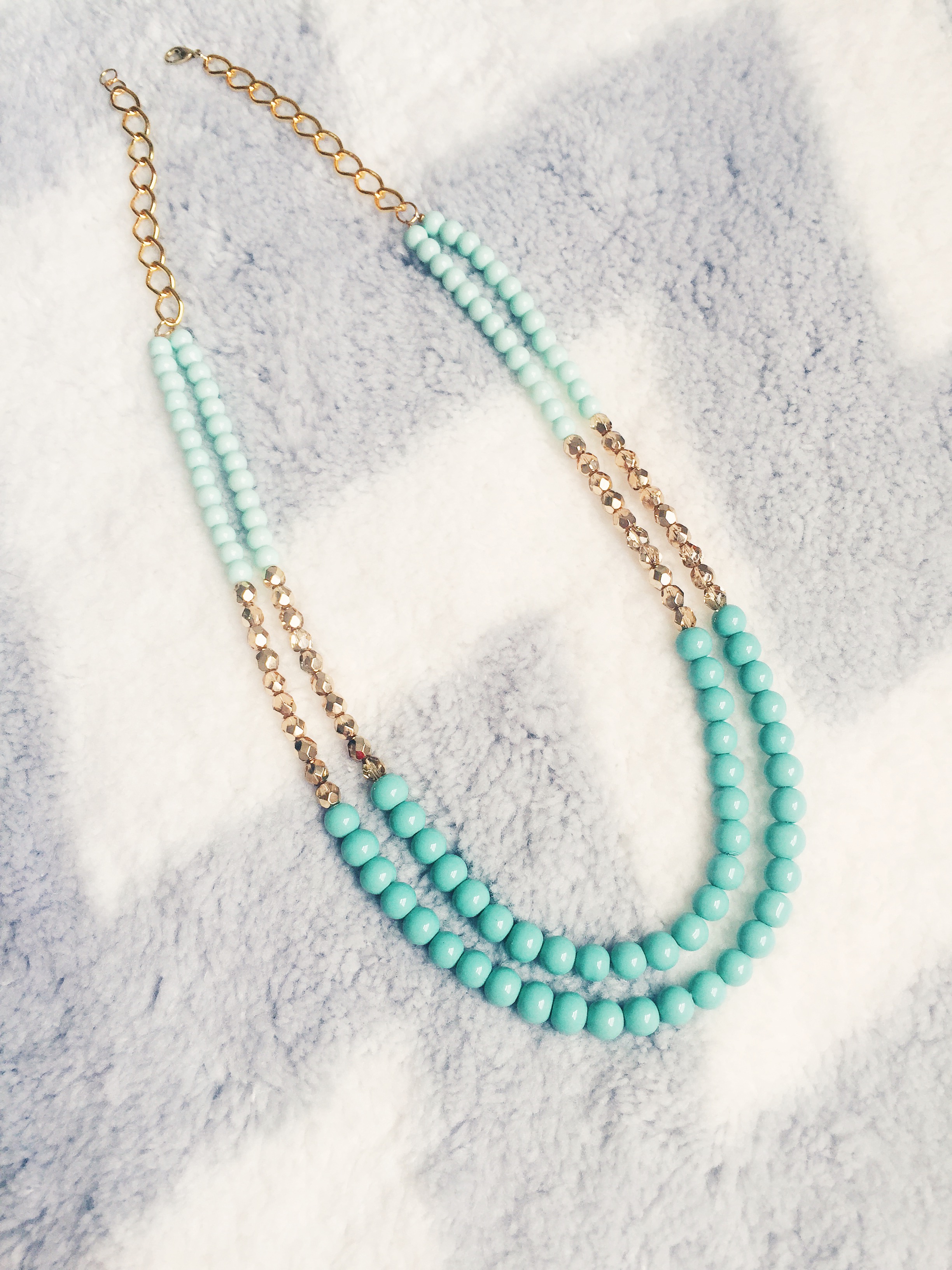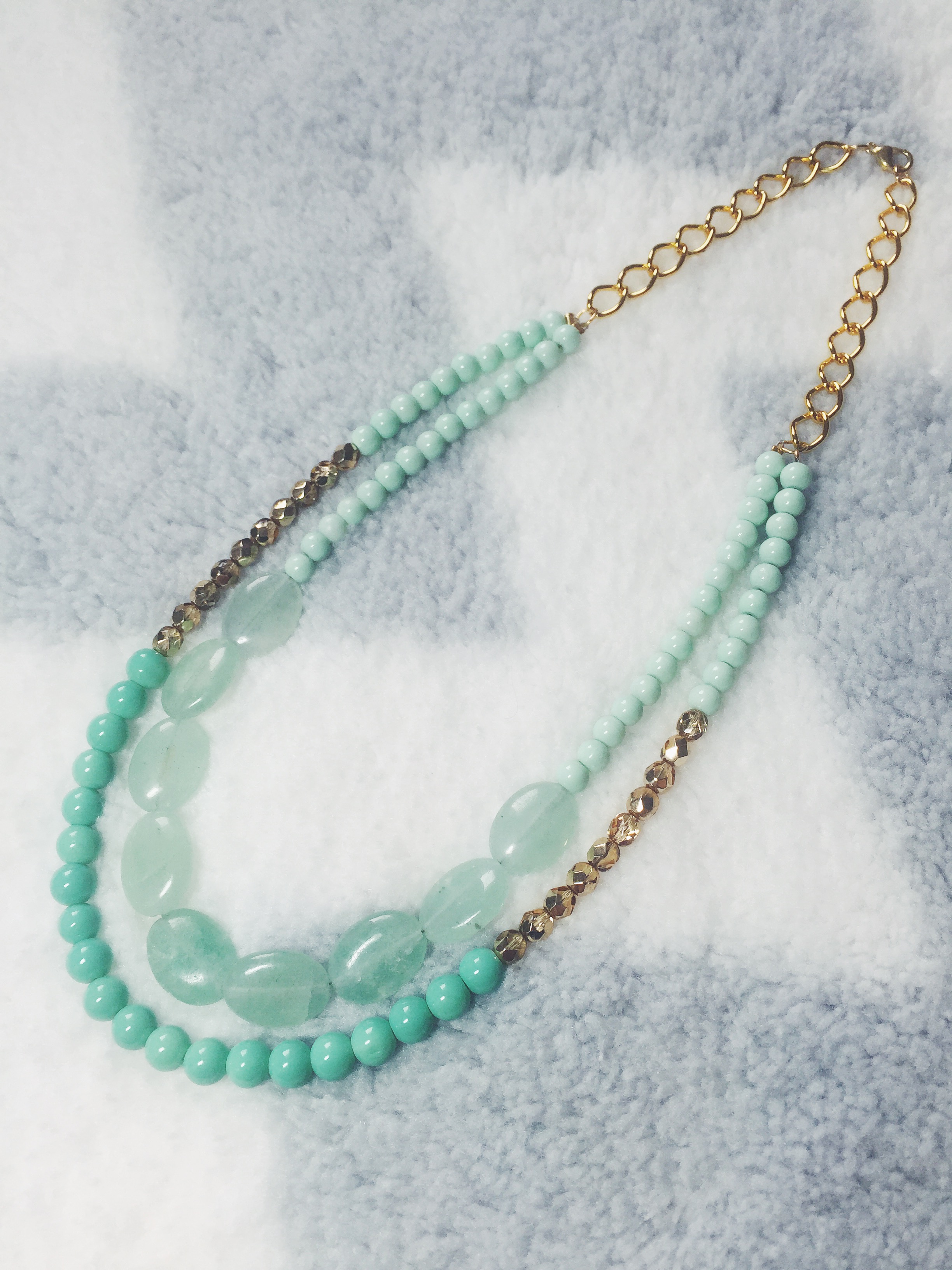 I recently fell in LOVE with this mint green color when shopping for beads to make fresh new summer designs! This color is the epitome of a thirst quenching color on a hot summer day… it will brighten up any summer outfit! I made two variations of this necklace, as seen above. The first with chunky sea-foam green gemstones for my festival-goers, and the second is a classier look with round pearl-shaped beads for my Audrey Hepburn-type girls. I paired these light green colored beads with a gold hue to give a cheerful and fresh summer look. These necklaces will go perfectly with your favorite summer cotton sundress for an easy-breezy, flowey look with a pop of color! The best part is that this Mint Green color will make any outfit fresh and glowing. I made both Double Stranded Statement Necklaces using Mint Green 6mm Glass Beads, Aqua-Colored Opaque 8mm Glass Beads, 6mm Glass Czech Gold Beads with a Fire Polish, and Green Oval Stones in a 15x20mm size (as seen in the 1st design). Shop here to get your fresh new summer look!